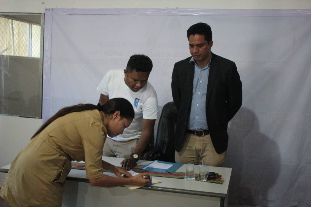 “Parabéns bá ita boot sira 15 ne’ebé konsege tuir formasaun, ohin ita boot sira tama iha faze asina akordu espera katak, depois asina akordu ne’e ekipa husi UNDP no mós MTCI sei halo monitorizasaun ba ita boot sira, osan sira ne’e ita boot sira uza duni ka lae,” Francelino relata.