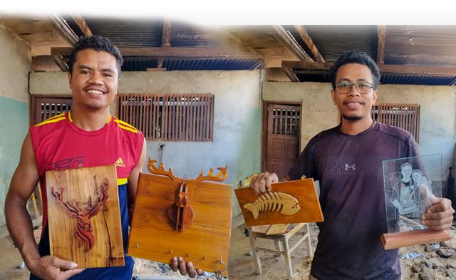 “Iha ne’e ami halo, Ukir tara xave (gantunggan) ho ukir ai kabuar, ukir vidru, dala ruma ami-nia kliente sira hameno rasik, tanba ami halo ida ne’e bazeia ba kliente nia hakarak maibé ami halo tuir ami nia kapasidade Ida tan mak, kelebihan husi ami-nia atu hamenus mós lixu ami rekolla filafali lixu mak transforma fali ba sasán uza nian,” Gelnoris esplika.