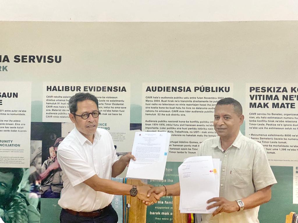 “Centru Nasional Chega IP asina akordu ida ne’e halo ho nota intendimentu ida parseria ba tinan naruk ho NGO BELUN hodi servisu hamutuk iha atividade implementa rekomendasaun ho NGO BELUN, maibé ezekusaun servisu ne’e halo ba fulan 6 to’o tinan ida depende ba servisu iha terenu, ONG hetan apoiu finanseiru husi CNC ho montante 17 míl,” Dehan Diretor Ezekutivu CNC Hugo Fernandes ba Jornalista sira iha knaar fatin kuarta,(01/03/2023).