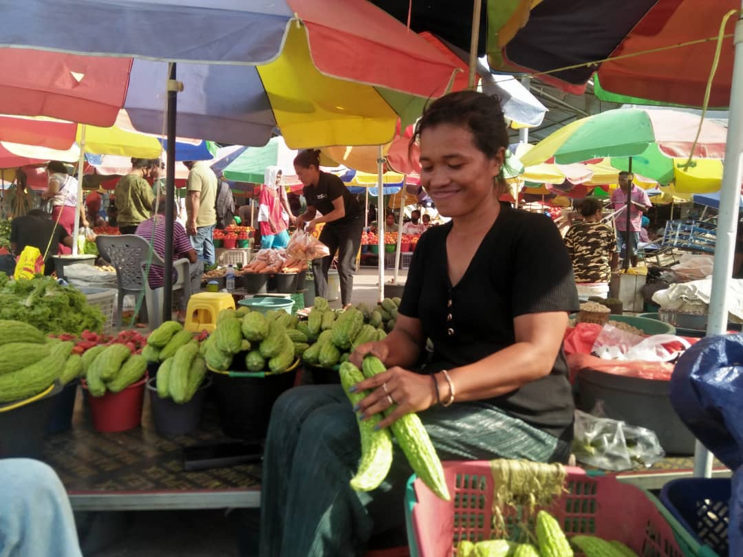“Durante ami fa’an sasán sira ne’e di’ak ida ema mai sosa maibé tempu ida ema la sosa, to’o modo no ai-fuan sira ne’e dodok hotu, maski nune’e ha’u nafatin kontente no pasénsia hodi hein ksolok loron aban nian,” Dehan negosiante Imelda Freitas ba jornalista Media Mudansa iha merkadu Taibessi, Dili Kuarta,(28/09/2023)