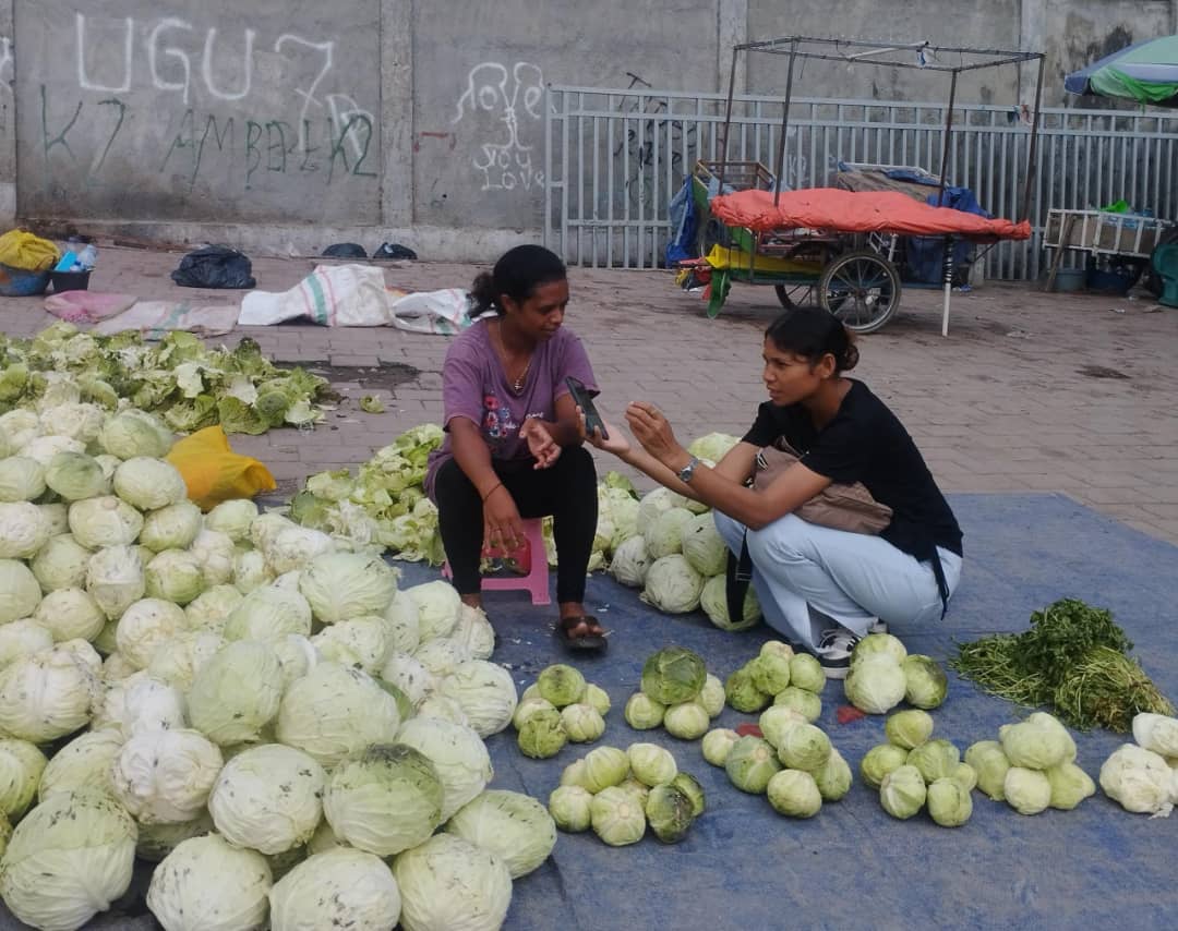 (Dili) Mudansa-Negosiante Domingas mendonça de Jesus hateten, rendimendu ne’ebé hetan kada loron menus, tanbà komprador sira oituan impaktu modo dodok estraga de’it.