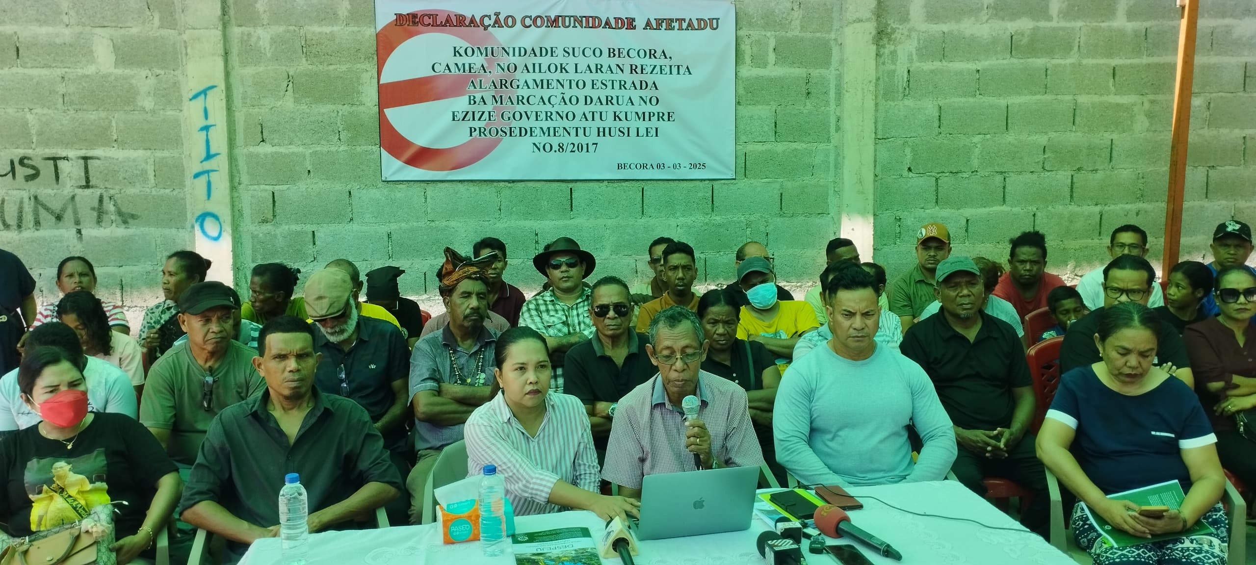(Díli) Bekora- kumunidade Afetadu husi suku bekora, Kamea no Ailok realiza konferensia imprensa tamba la simu ho alargamentu estrada ba markasaun daruak no komunidade sira husu ba parte Governu tenki kumpri tuir prosedementu lei Nú 8/2017.