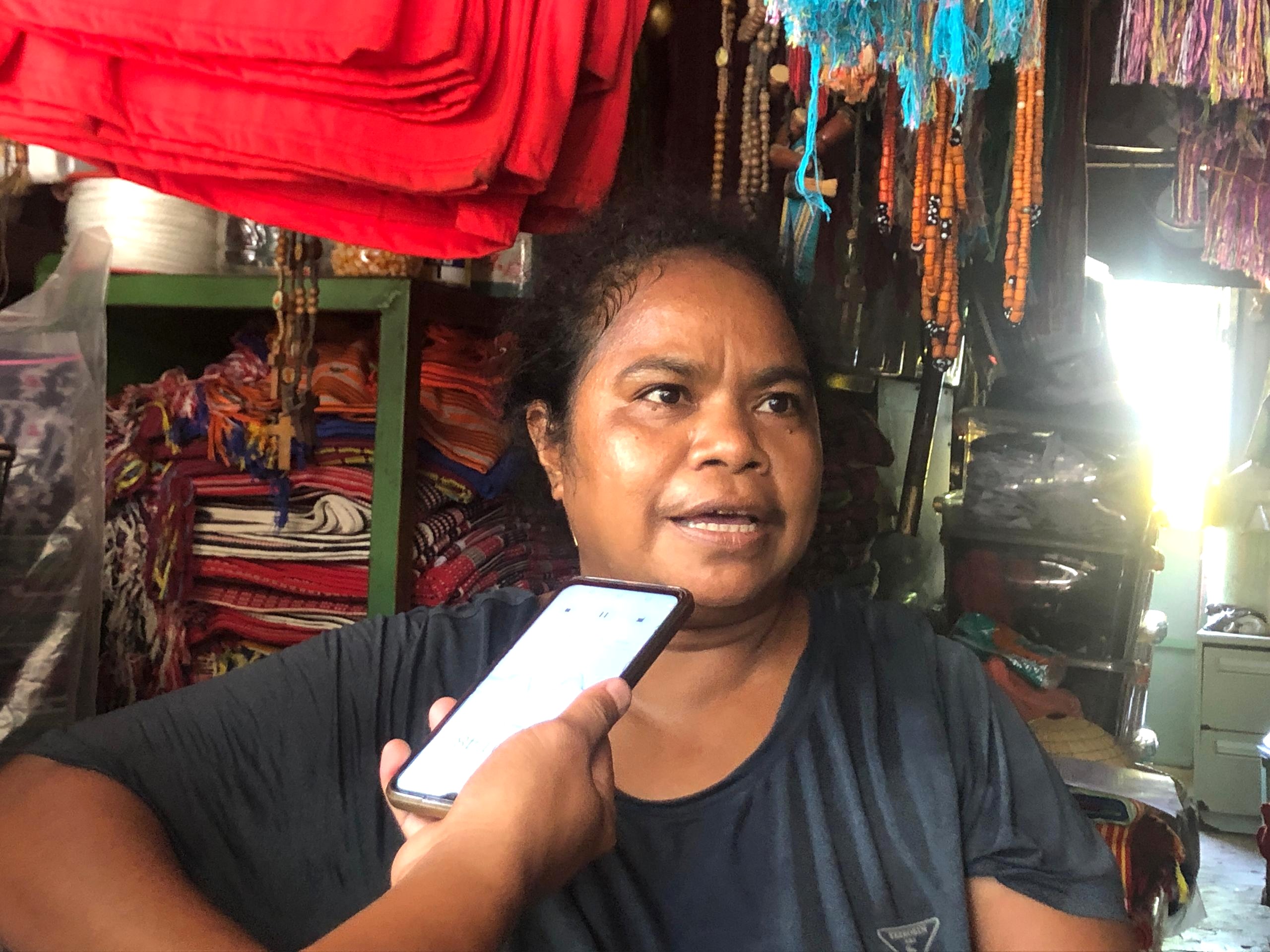 “Ema ne’ebé mai kompra ne’e husi estranjeiru no Australia no Timor oan sira mós mai kompra iha fatin ne’e, tanba hanesan hare’e ba lia mate feto-san no uma-mane ne’e sira sempre mai sosa iha ami nia fatin no estudante sira balun bainhira hala’o orentasaun ne’e sira mai sosa tais iha ne’e”, Veronica relata