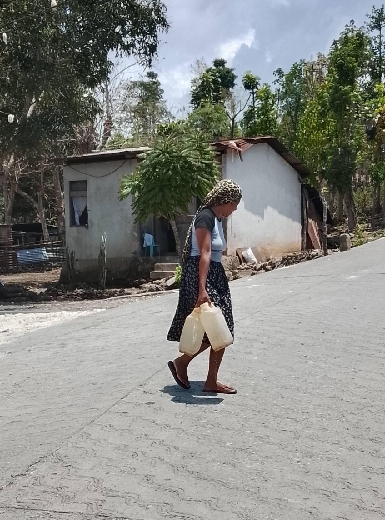 “Antes kompañia Leohara halo kanalizasaun ba bee ne’e ami la buka bee, maske semana ida bee sai dala ida ka rua de’it, maibé agora ami tenki lao ain kilo 5 mak ba kuru bee-moos hodi uza ba han no uza ba nesesidade seluk”, dehankomunidade Maria dos Santos ba jornalista sira iha Balibo Vila, Segunda, 13/10/2025